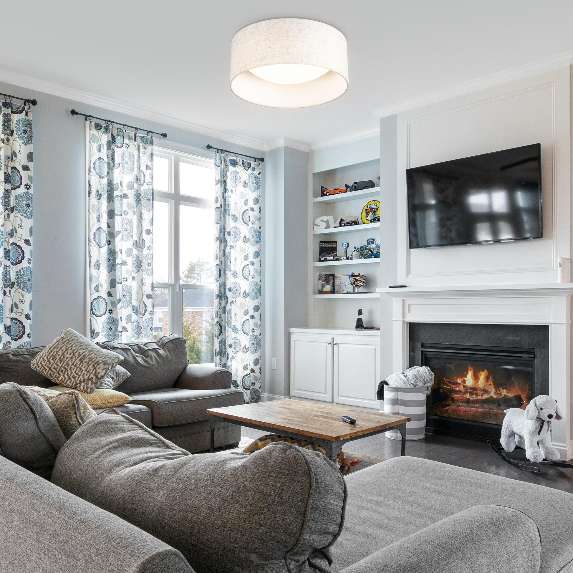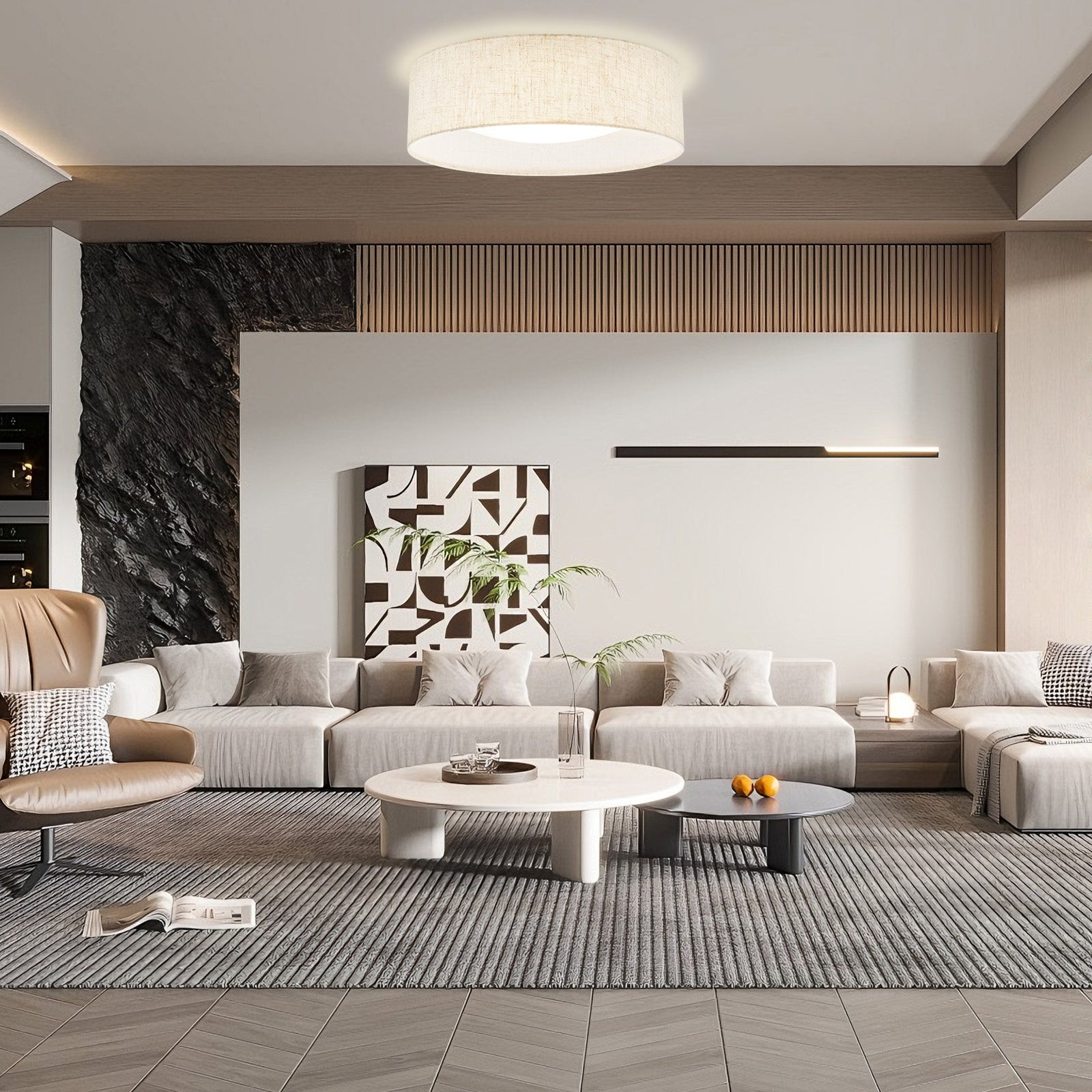 The design of this ceiling light is simple yet elegant, and the texture of the fabric cover is very good, giving a warm feeling, which is very suitable for modern home style.