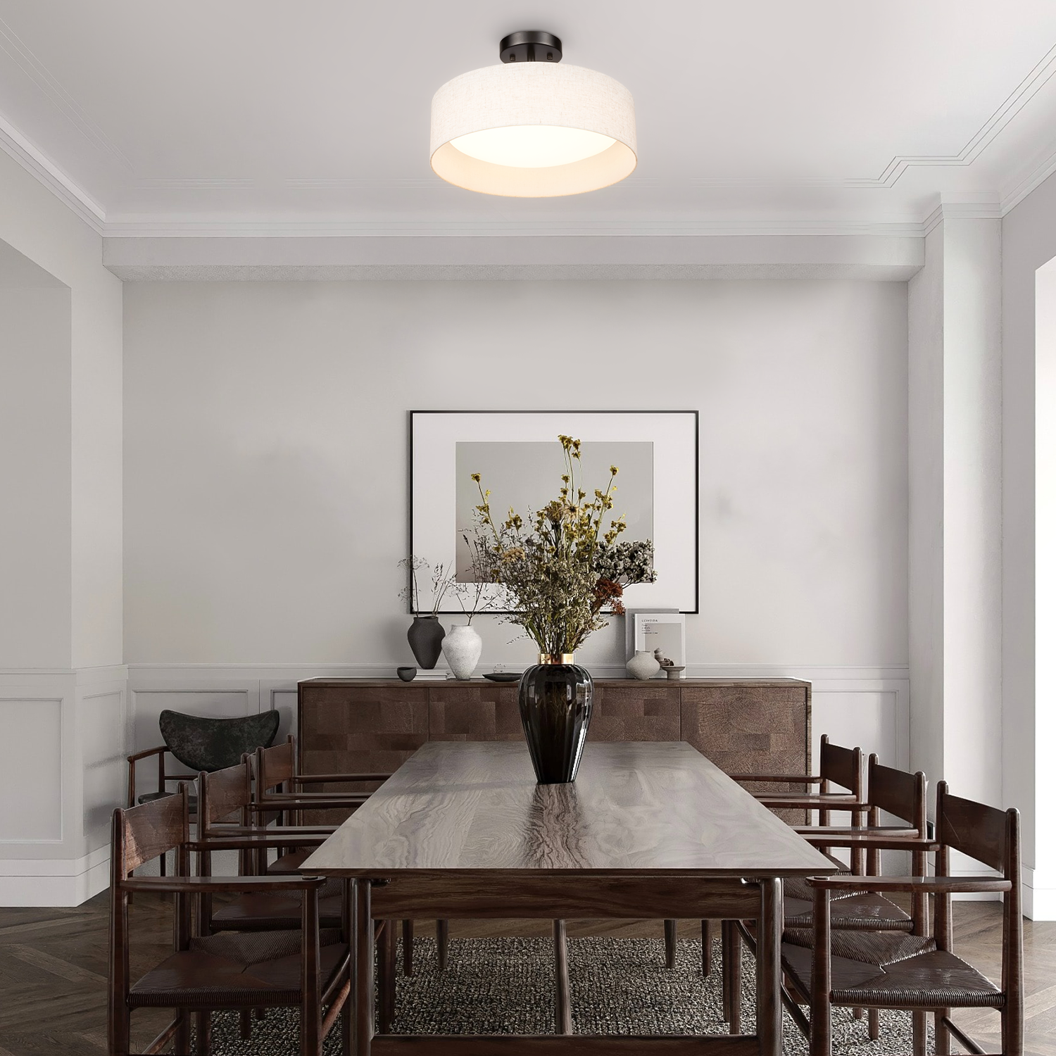Hamilyeah 12" LED Semi Flush Mount Ceiling Light Dimmable with Fabric Shade