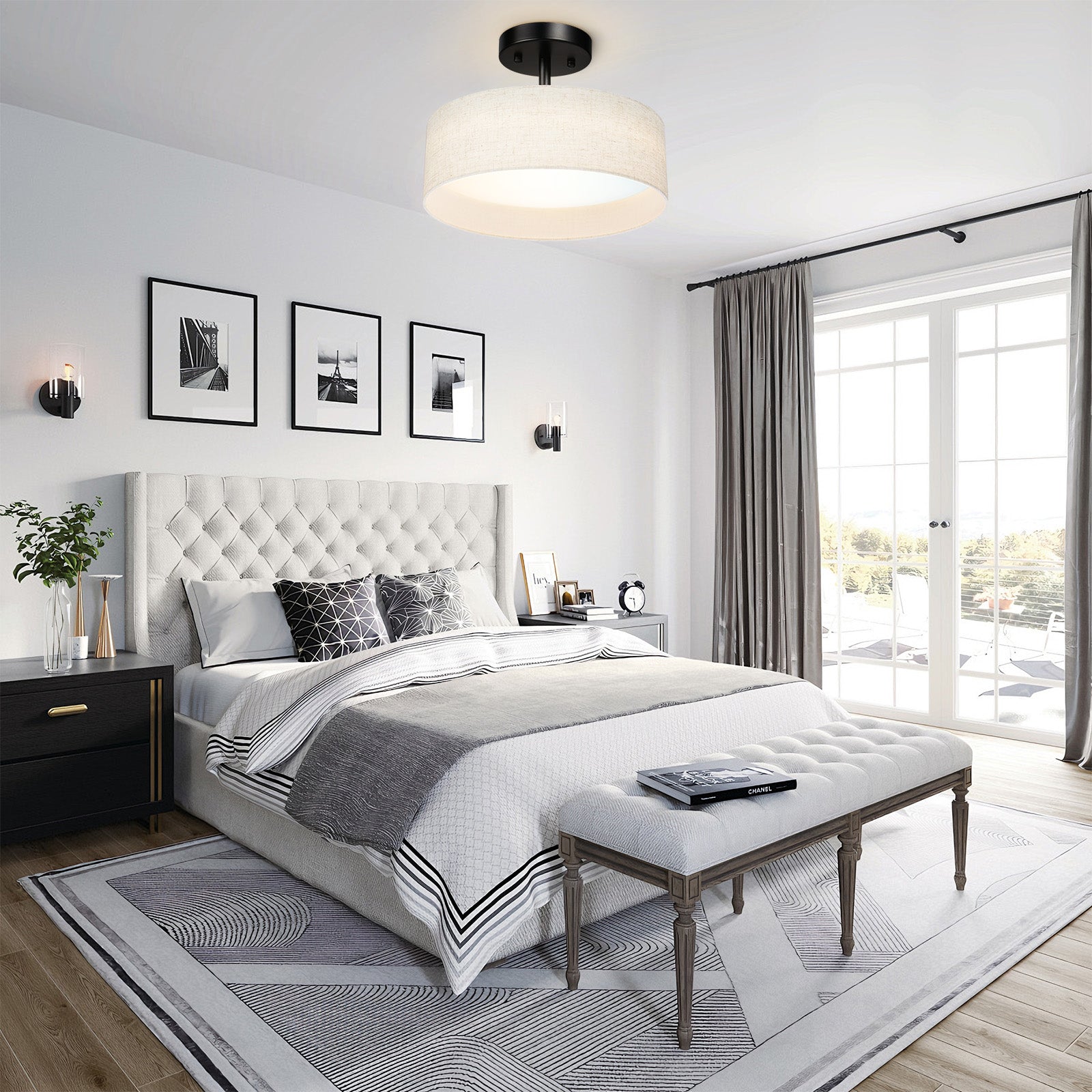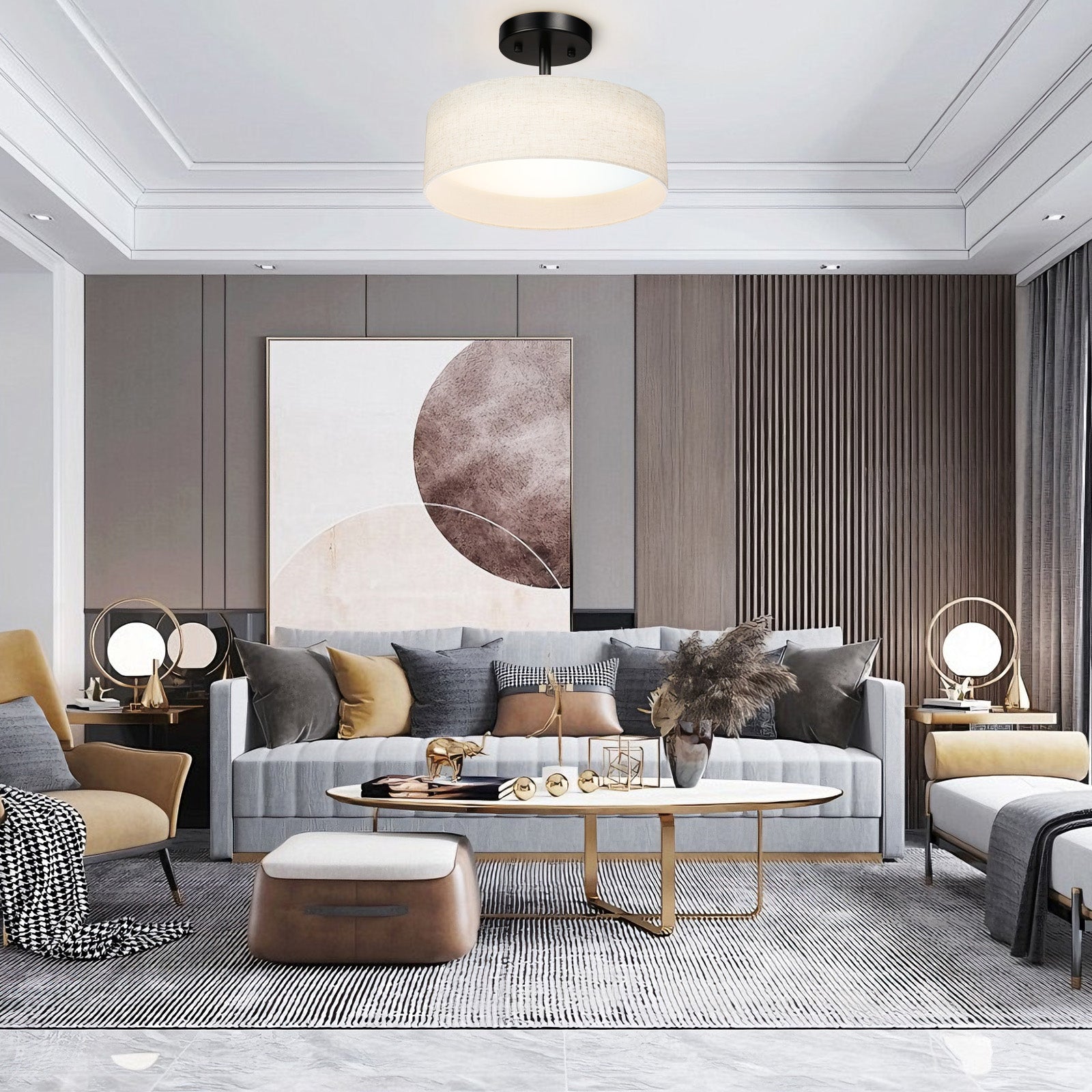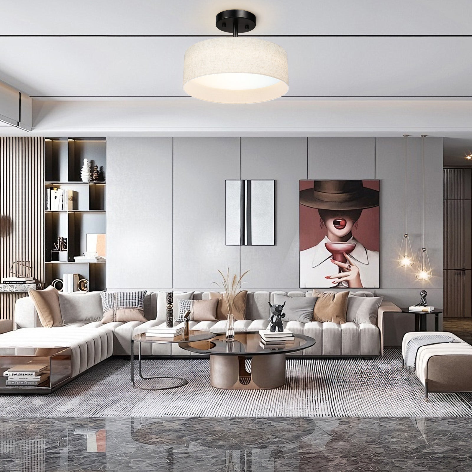 The design of this ceiling light is simple yet elegant, and the texture of the fabric cover is very good, giving a warm feeling, which is very suitable for modern home style.