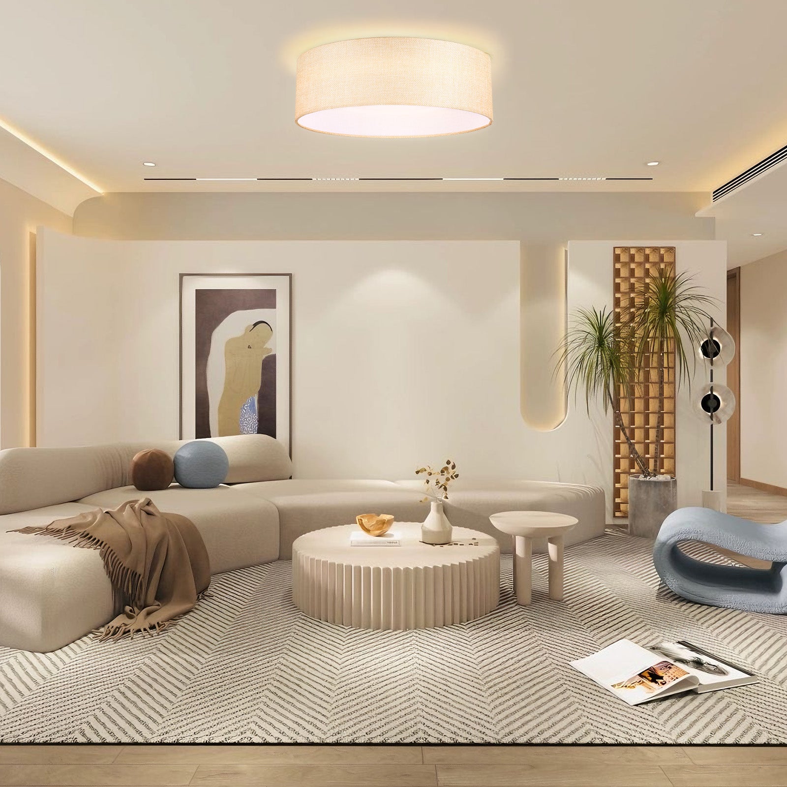 The design of this ceiling light is simple yet elegant, and the texture of the fabric cover is very good, giving a warm feeling, which is very suitable for modern home style.