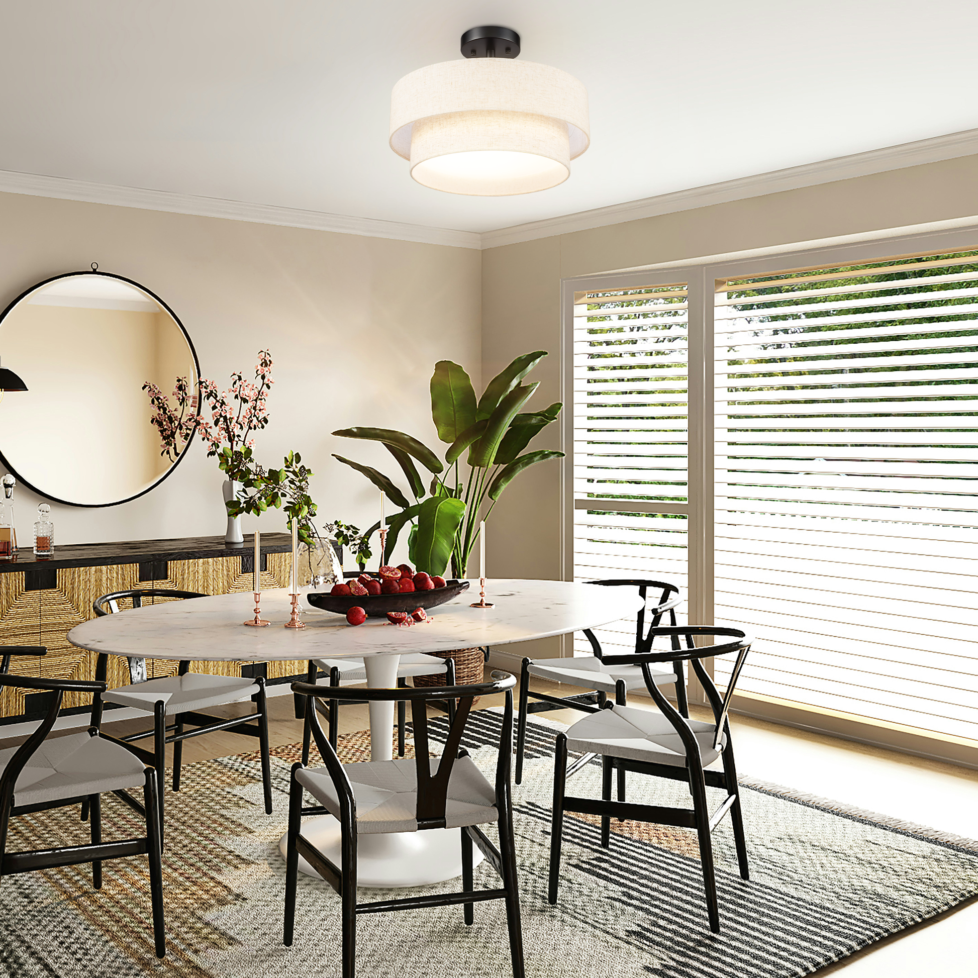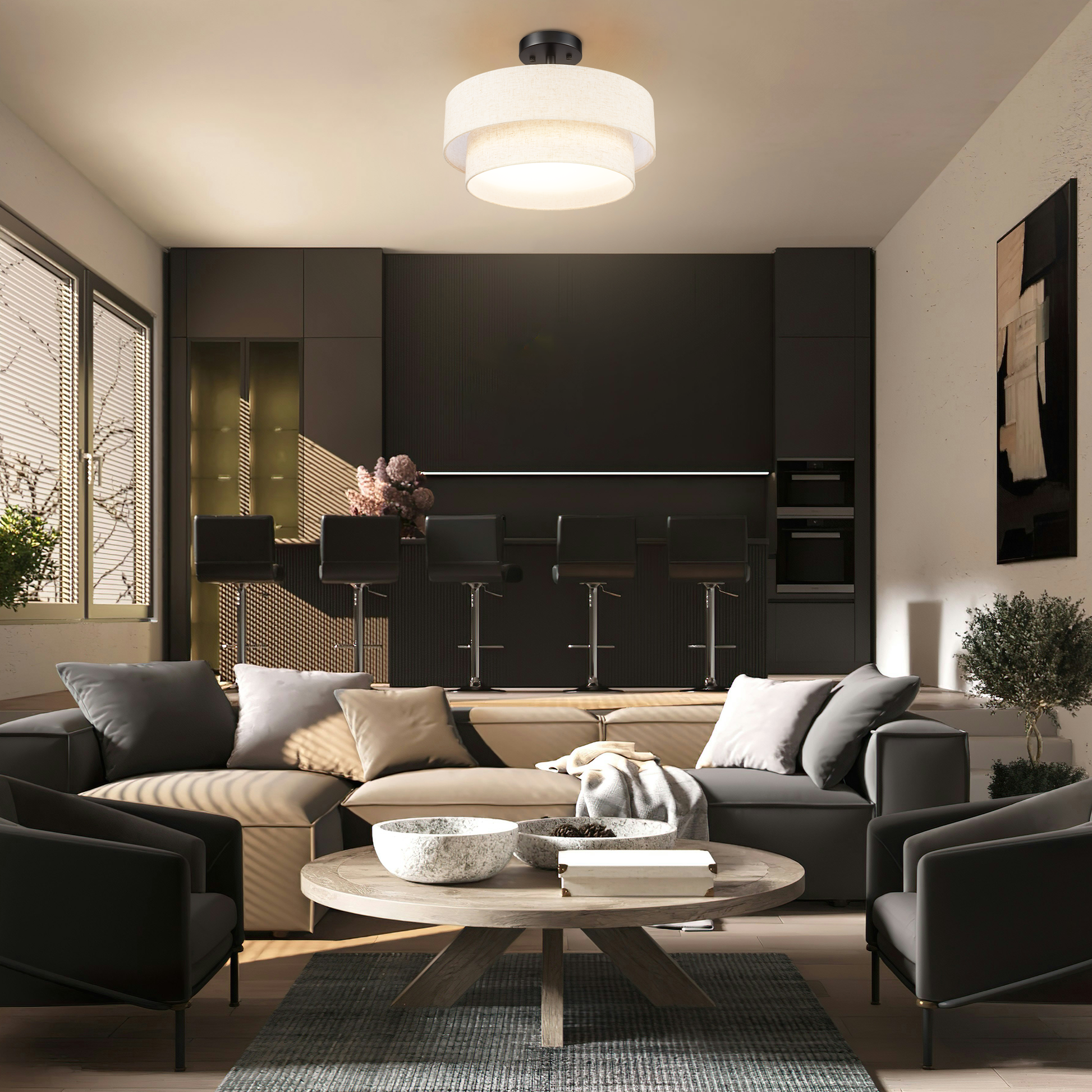 The design of this ceiling light is simple yet elegant, and the texture of the fabric cover is very good, giving a warm feeling, which is very suitable for modern home style.