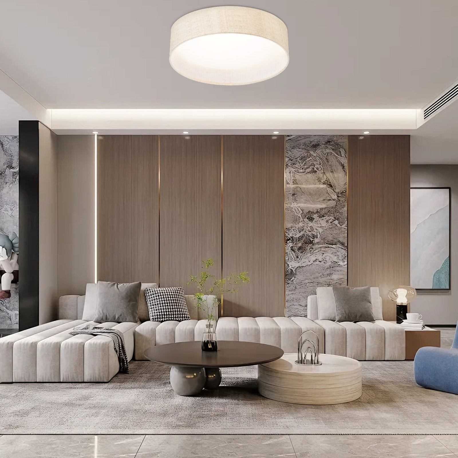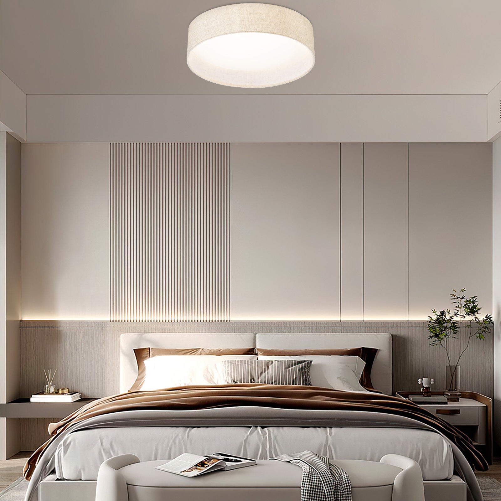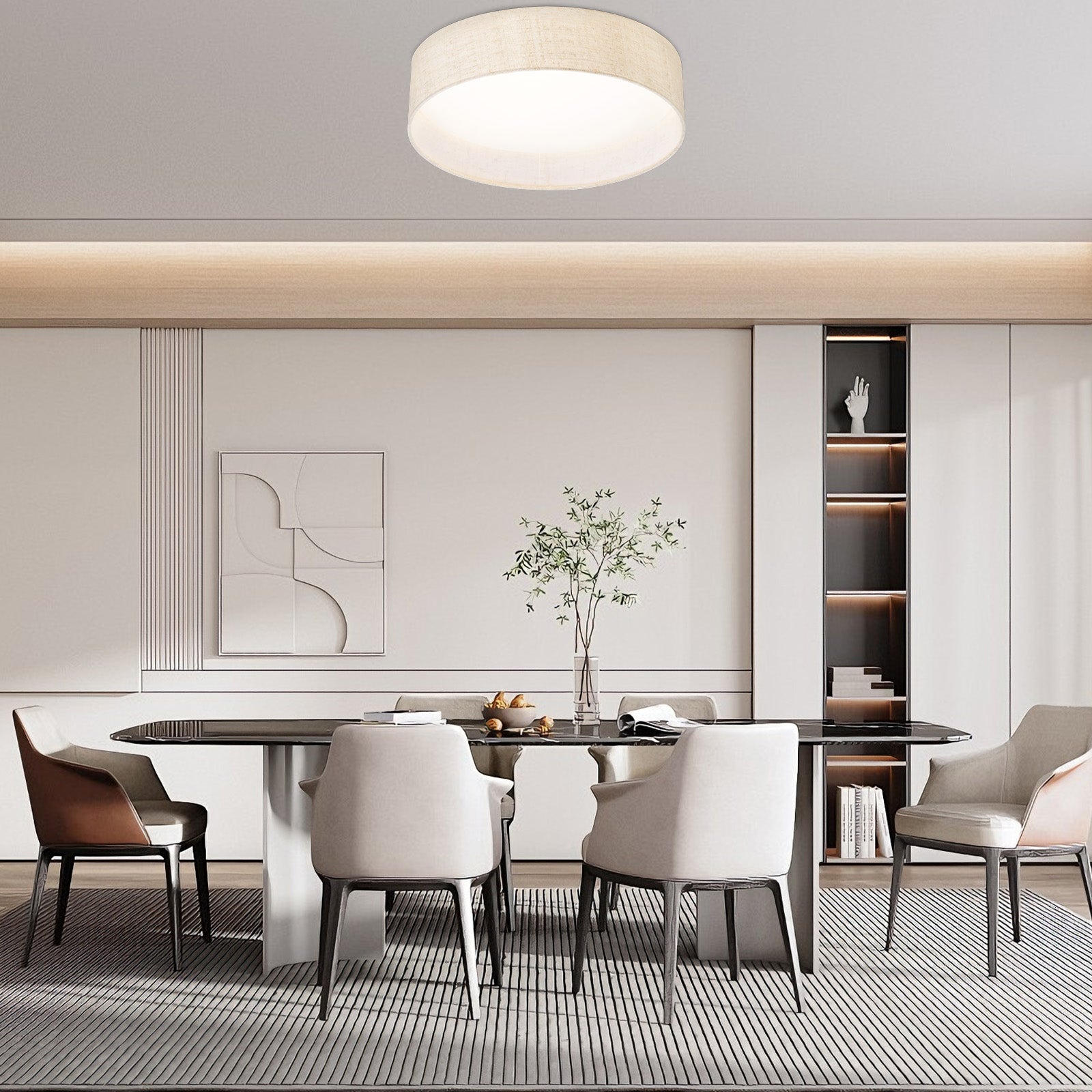 The design of this ceiling light is simple yet elegant, and the texture of the fabric cover is very good, giving a warm feeling, which is very suitable for modern home style.